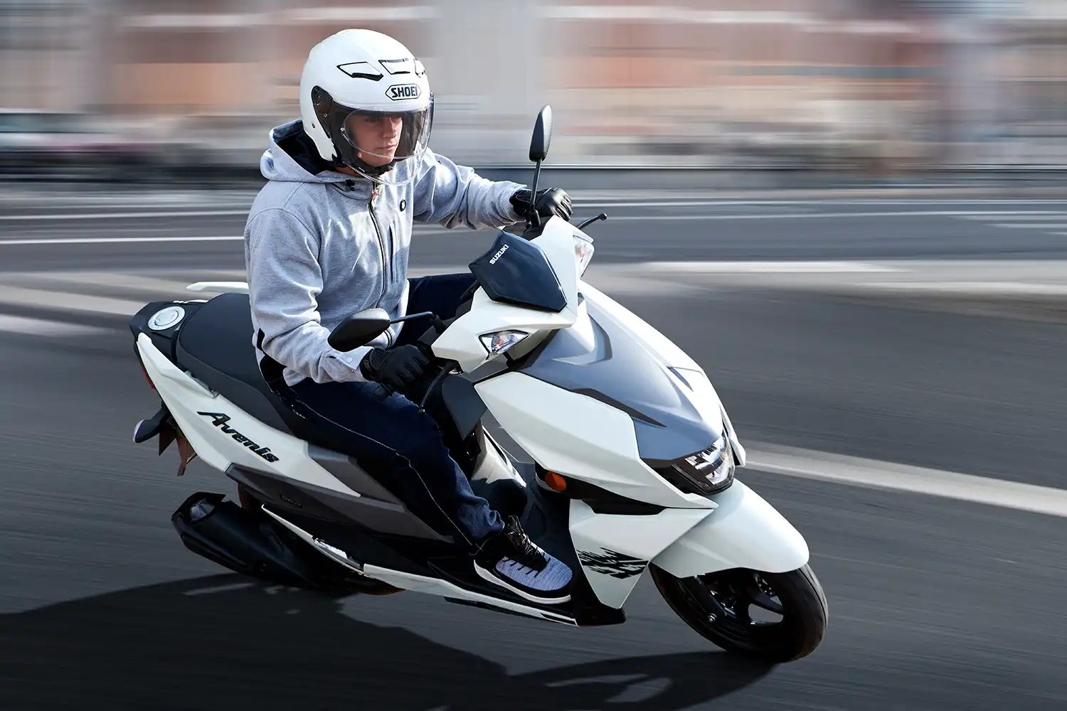 A Suzuki Avenis egy teljesítmény-vezérelt sportos robogó, amely elegendő erővel rendelkezik ahhoz, hogy bármilyen utazást pörgőssé tegyen. Ugyanazt az üzemanyag-takarékos, ugyanakkor nyomatékos motort használja, mint az Address, mégis kitűnik agresszív megjelenésével, amit az ék alakú hátsó rész, a felfelé ívelő kipufogó, a karosszériára szerelt LED-es fényszórók, a LED-es kombinált hátsó lámpák és a kéttónusú dizájn hangsúlyoz.