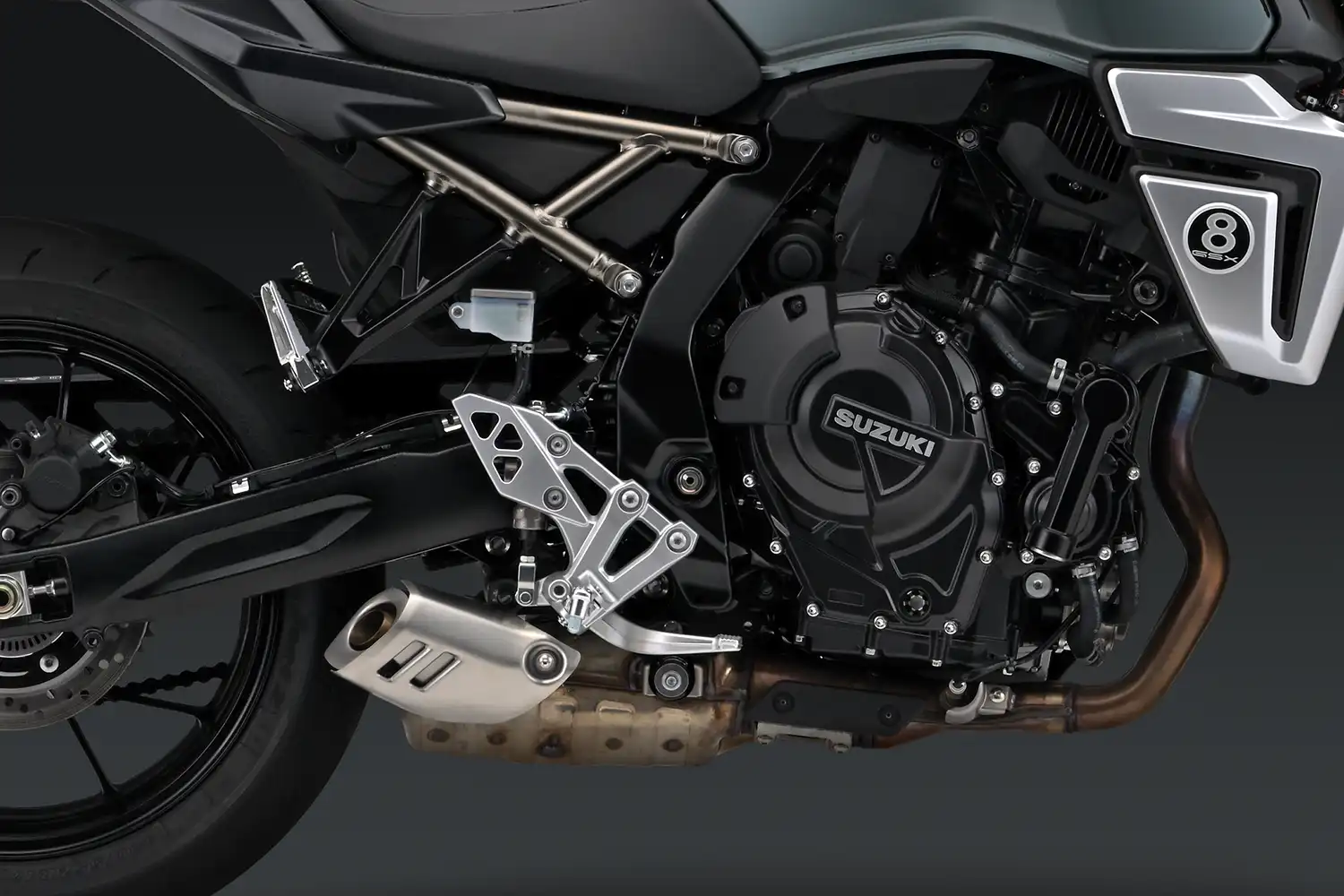 A GSX-8TT váz vékony, kompakt, könnyű és fürge — kimondottan a nagy teljesítményű soros kéthengeres motor támogatására tervezve. Még az opcionális oldaldoboz készlet felszerelése mellett is kiváló kezelhetőséget és kontrollt biztosít. Egy- vagy két személlyel is csökkenti a motoros fáradtságát. A váz szívét egy erős, nagy merevségű egység alkotja, a segédváz masszív és stílusos. A könnyű alumínium lengővilla éles, gyors reakciókat biztosít. A vázgeometria egyaránt támogatja stabilitást és a könnyed kezelhetőséget. A motor kompakt elhelyezése előre pozícionálja a motorost, megkönnyítve a súlypont áthelyezését és a GSX-8TT irányítását.