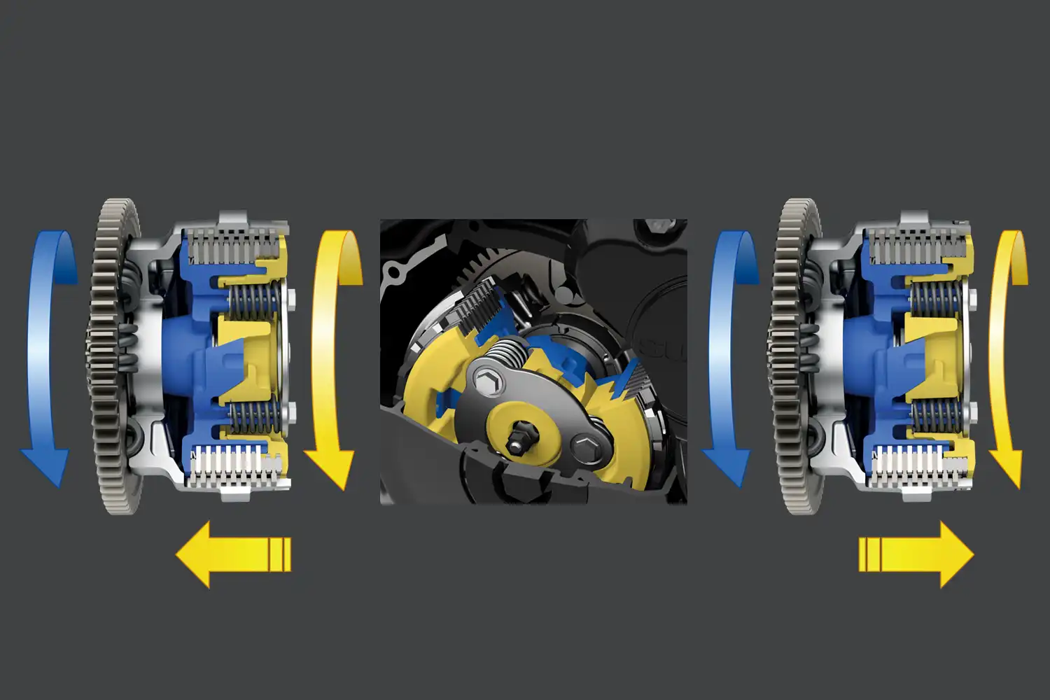 A kuplung visszaváltáskor kis mértékű csúszást enged (csúszókuplung) ezzel akadályozva meg a hátsó kerék megcsúszását és pattogását, javítva a motor stabilitását. Ezt egy asszisztens funkció egészíti ki, ami gyorsításkor extra erővel nyomja össze a lamellákat. Ennek köszönhetően viszonylag lágy kuplung rugók használata válik lehetővé, ami könnyű kar érzetet biztosít, így kímélve a motorost. Ez különösen nagy jelentőséggel bír dugóban araszoláskor, vagy hosszú túrák során.